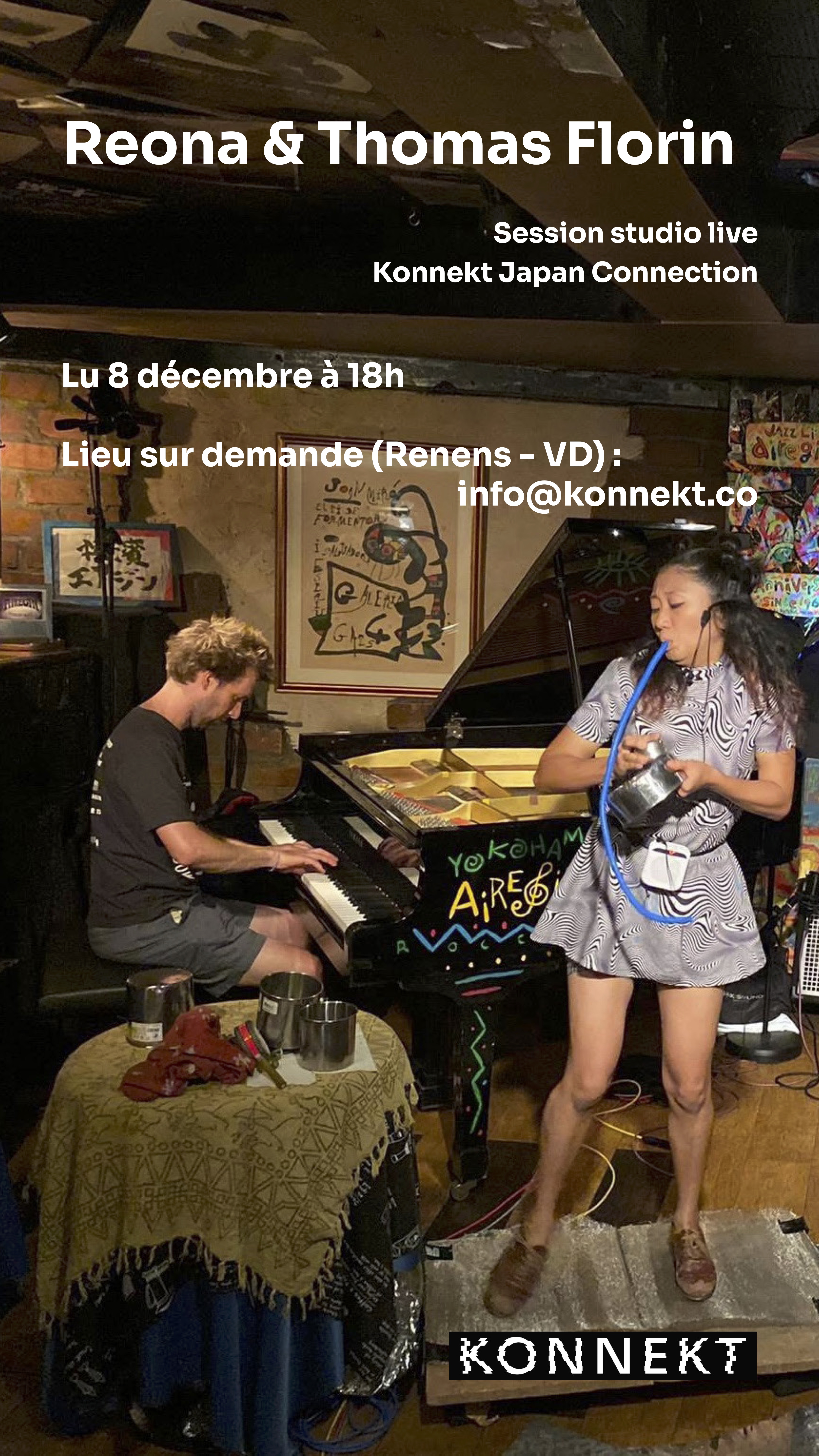 For this new episode of Konnekt Japan Connection, don't miss one of the most innovative improviser of the Japanese scene Reona (tap dancing and percussion), together with pianist Thomas Florin. This duo has been performing in Japan, don't miss this unique opportunity in Switzerland organised by Konnekt (live recording session).