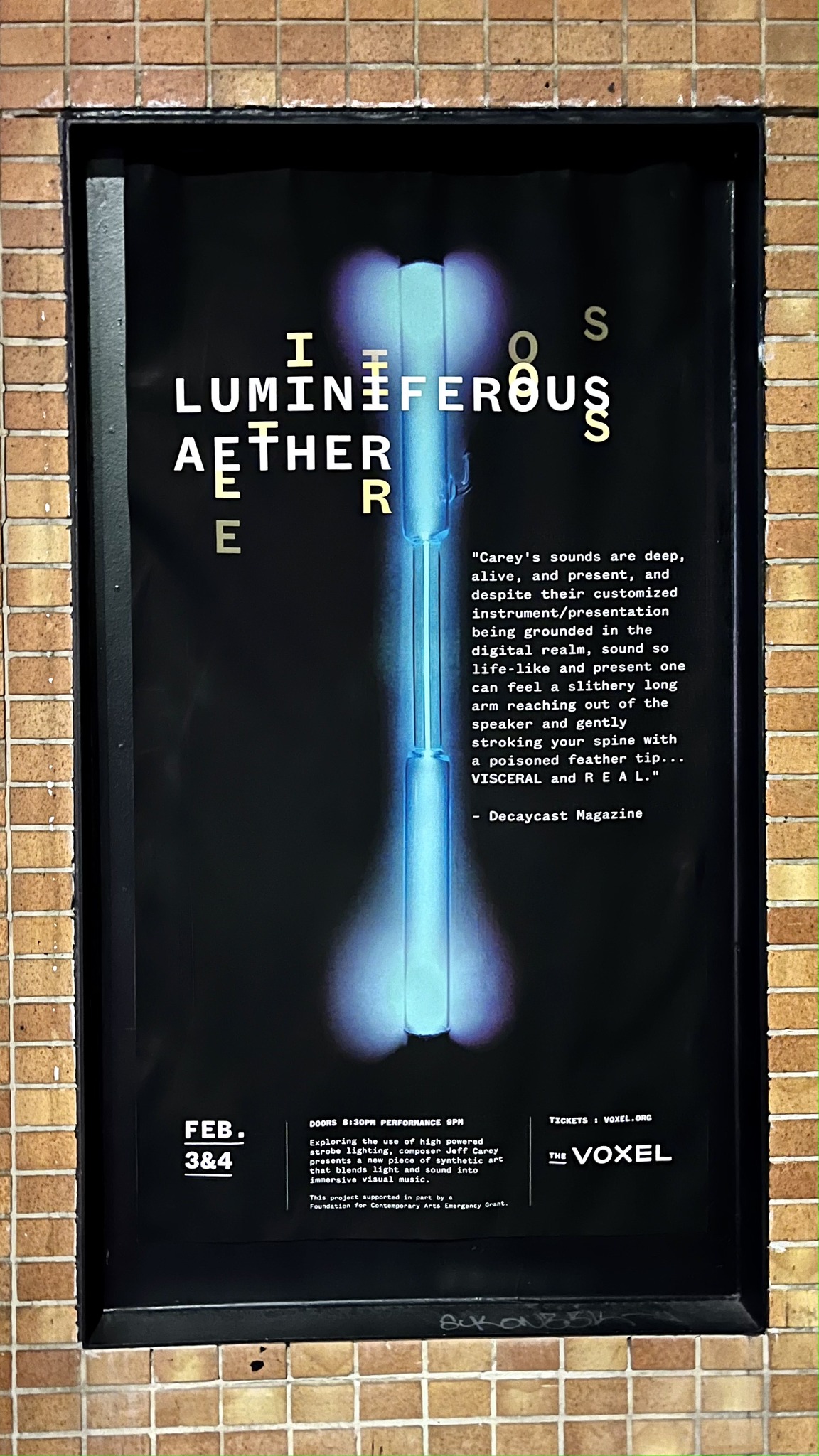 Luminiferous Aeather, April 2023, sound and light immersive piece.