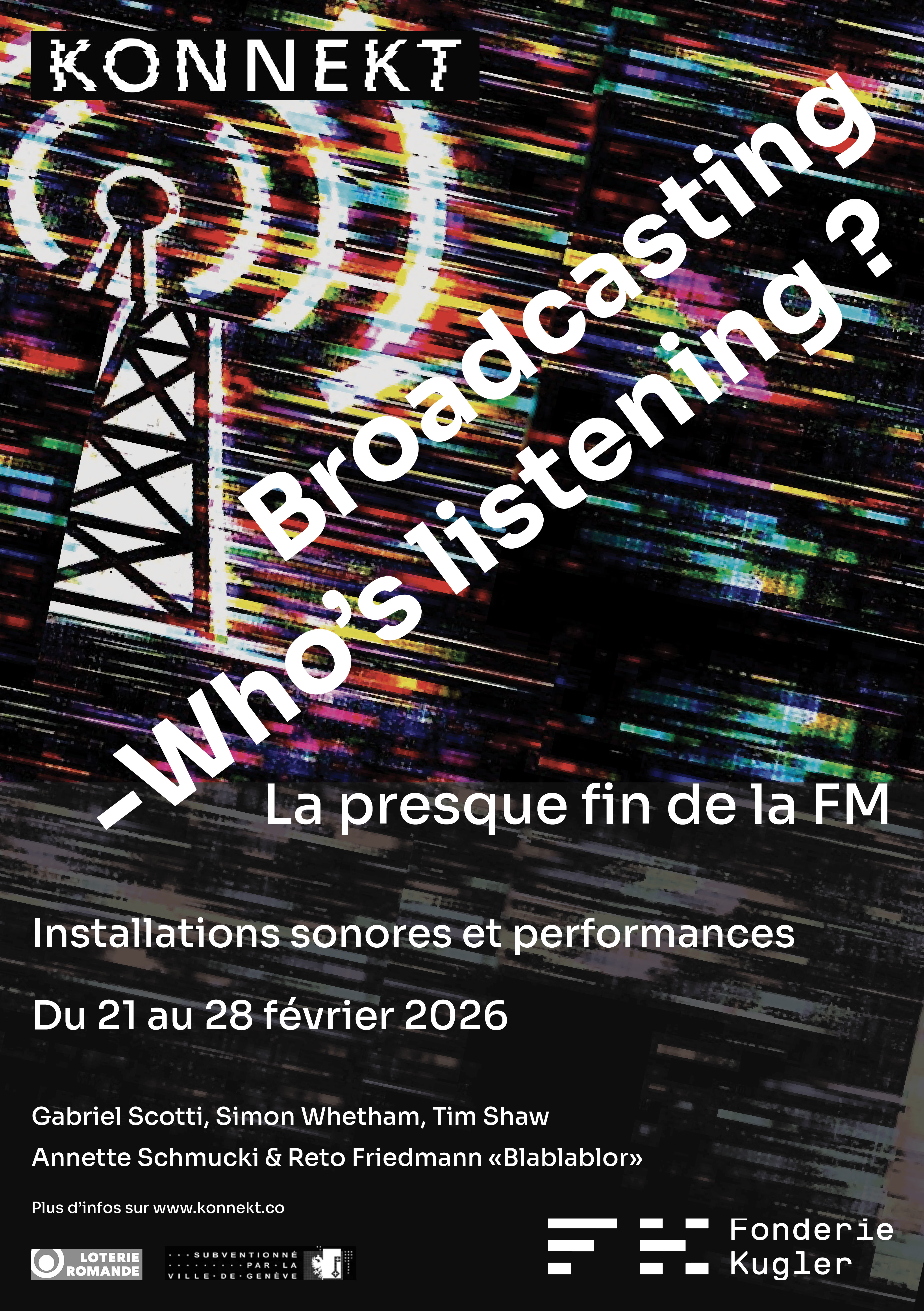 Performances et installations sonores, avec Gabriel Scotti, Simon Whetham, Blablablor - Annette Schumucki & Reto Friedmann - Blablablor, Tim Shaw.